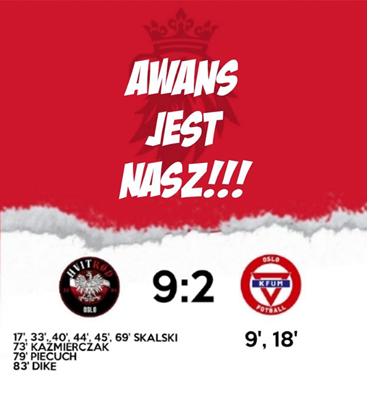 Hvit-Rød Oslo triumfuje 9-2 nad KFUM 3 i awansuje do 9 ligi!